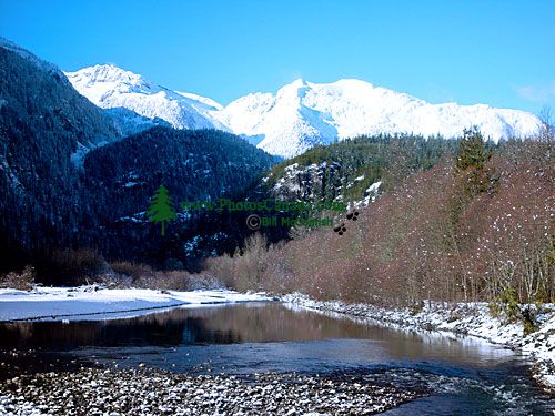 Squamish – Canada’s Winter Bald Eagle Capital – thousands of eagles gather here during winter time for the annual salmon run. www.PhotosCanada.com  Squamish river with Mt. Garibaldi in background-10 minutes from NuSalya www.PhotosCanada.com